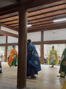 例年、立砂の前で奉納されるのですが、今年はあいにくの雨で、室内となりました。天井にあたらないように鞠を蹴るのは、それなりに難しいようです。