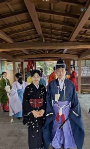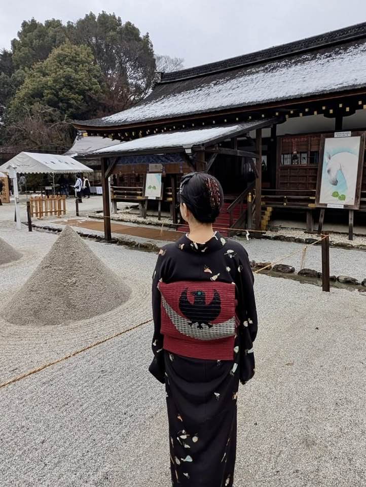衣紋道山科流の次期後嗣山科言親さんも、蹴鞠保存会に入られて、昨年からご挨拶させて頂いています。今年も、八咫烏の帯を新調したので、見てもらいました