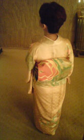 今年の裏千家初釜式には迷った末、『ノーブレス』と同じきものに青海波の帯をあわせてみました。この帯は20代の時に母が誂えてくれましたが、色々な色が入っているので、とても便利。今回は朱赤を強調しました。黄や紫や青を前に持ってくるとまた、印象が変わります