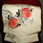 この季節、お店にザクロが並んでいるのを見ると、嬉しくなります。これらの帯を締めようと思うから。着物の文様としての石榴が好き。九谷焼にもよく描かれています。中国では吉祥文様ですから。左は染帯、右は刺繍帯(裏は椿)。いずれも、かわの屋さんで購入しました。