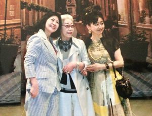黄色のワンピとベルトは今年の作品ですが、毛皮のボレロは数年前、迷彩ワンピにあわせて購入したもの。「このボレロは一生もんね」とユキ先生。つまりは、今後も色々な服にコーデ可能ということです。当時は「夏の毛皮を一度やりたいと思っていたの」とお話されていました。