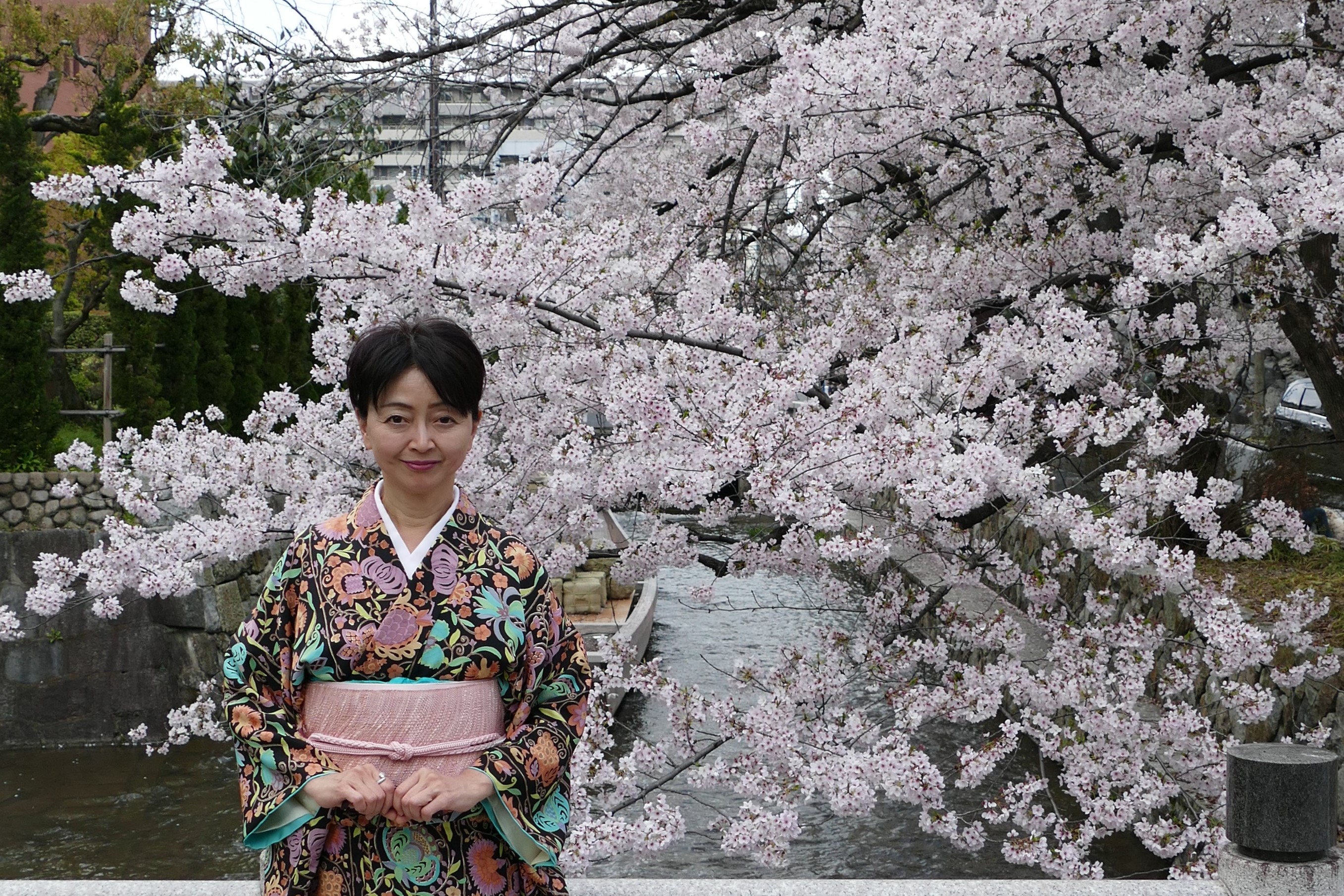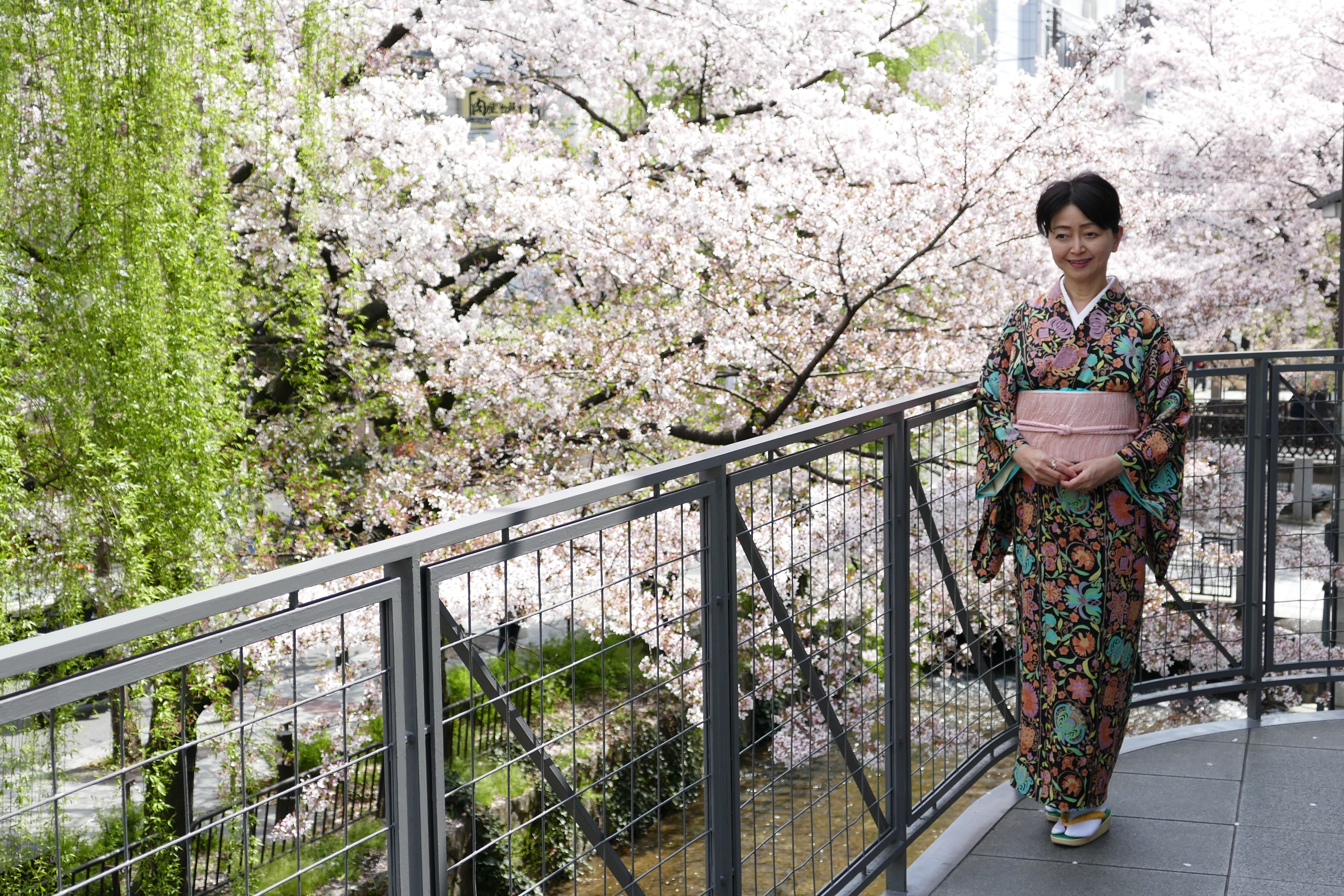 2017年4月 葵文に桜色の帯で 鴨川の桜を愛でる