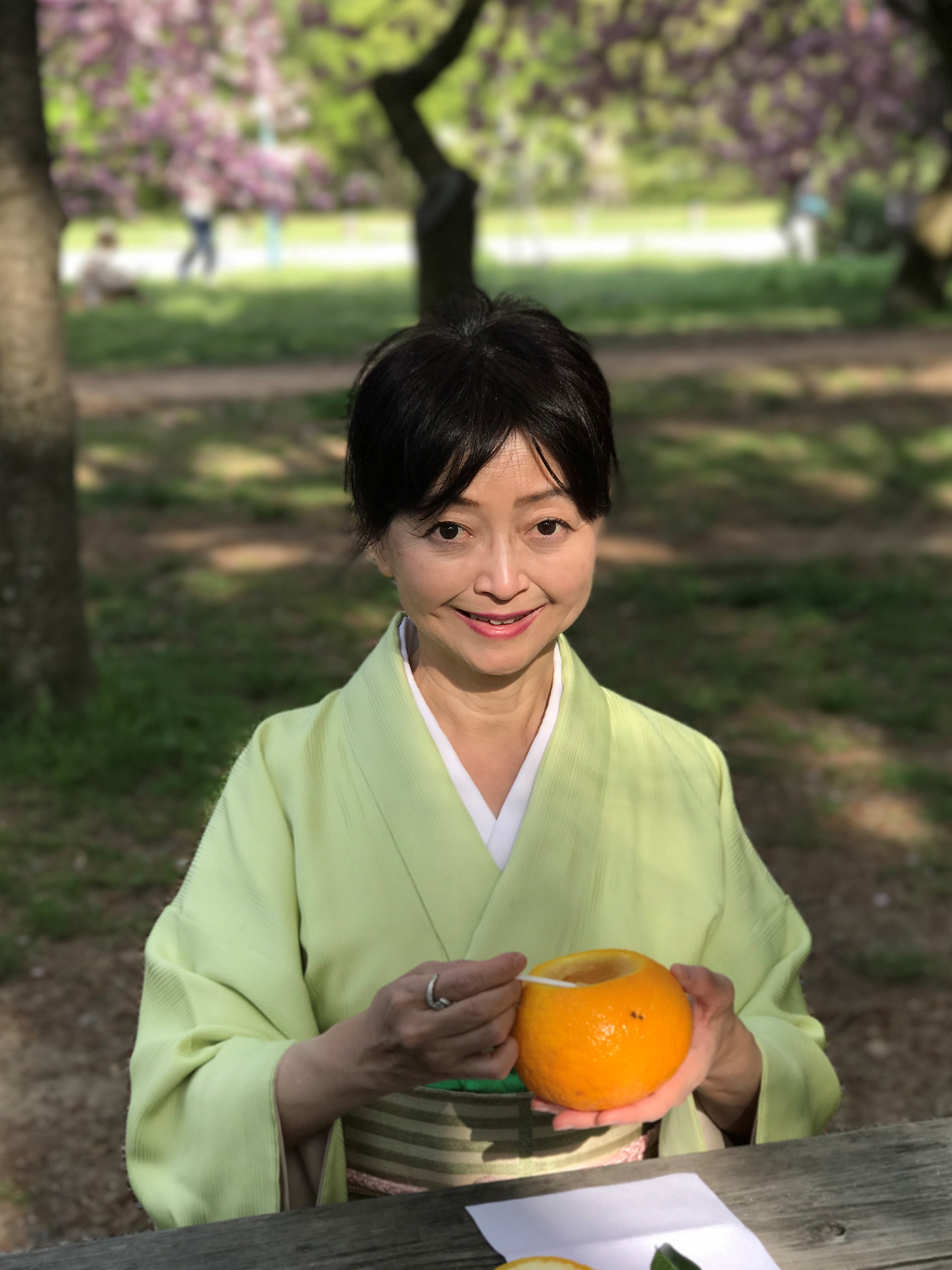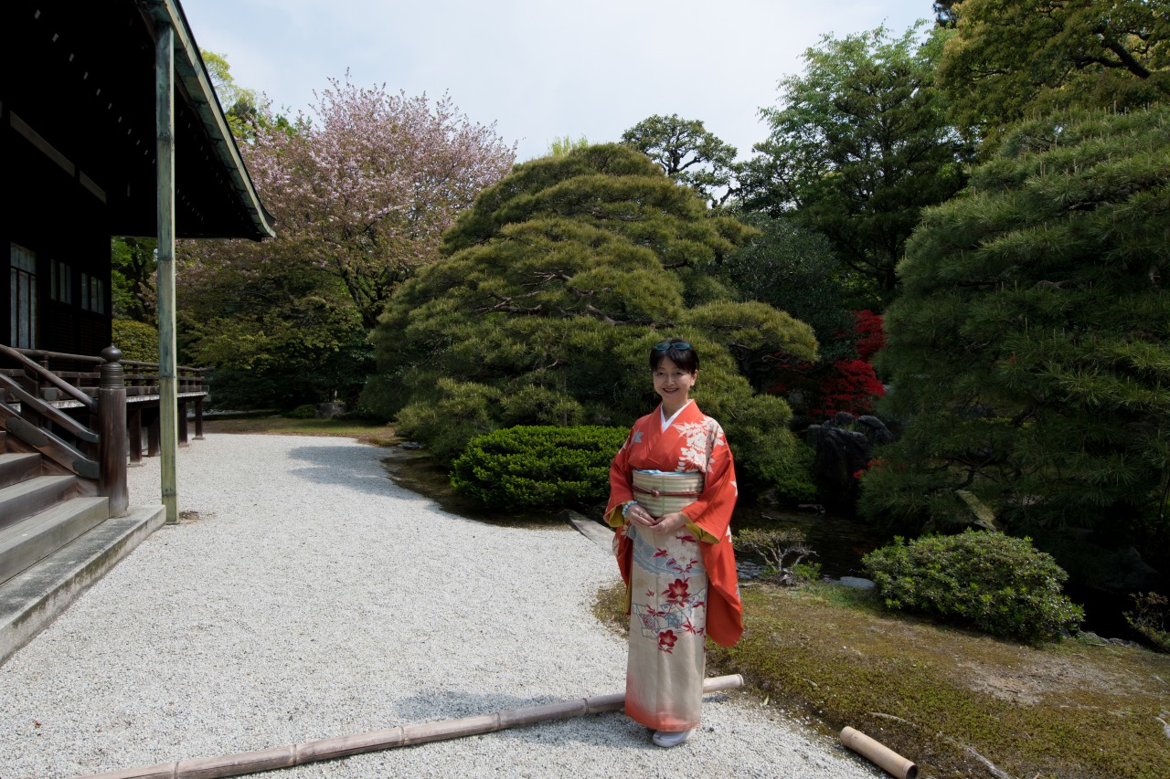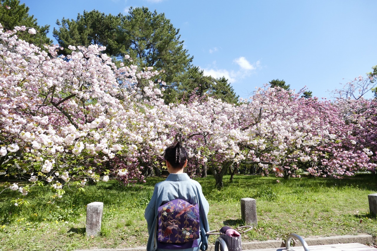 2017年4月 夏柑糖を食す@京都御所の桜満開の下 八重桜文の帯で