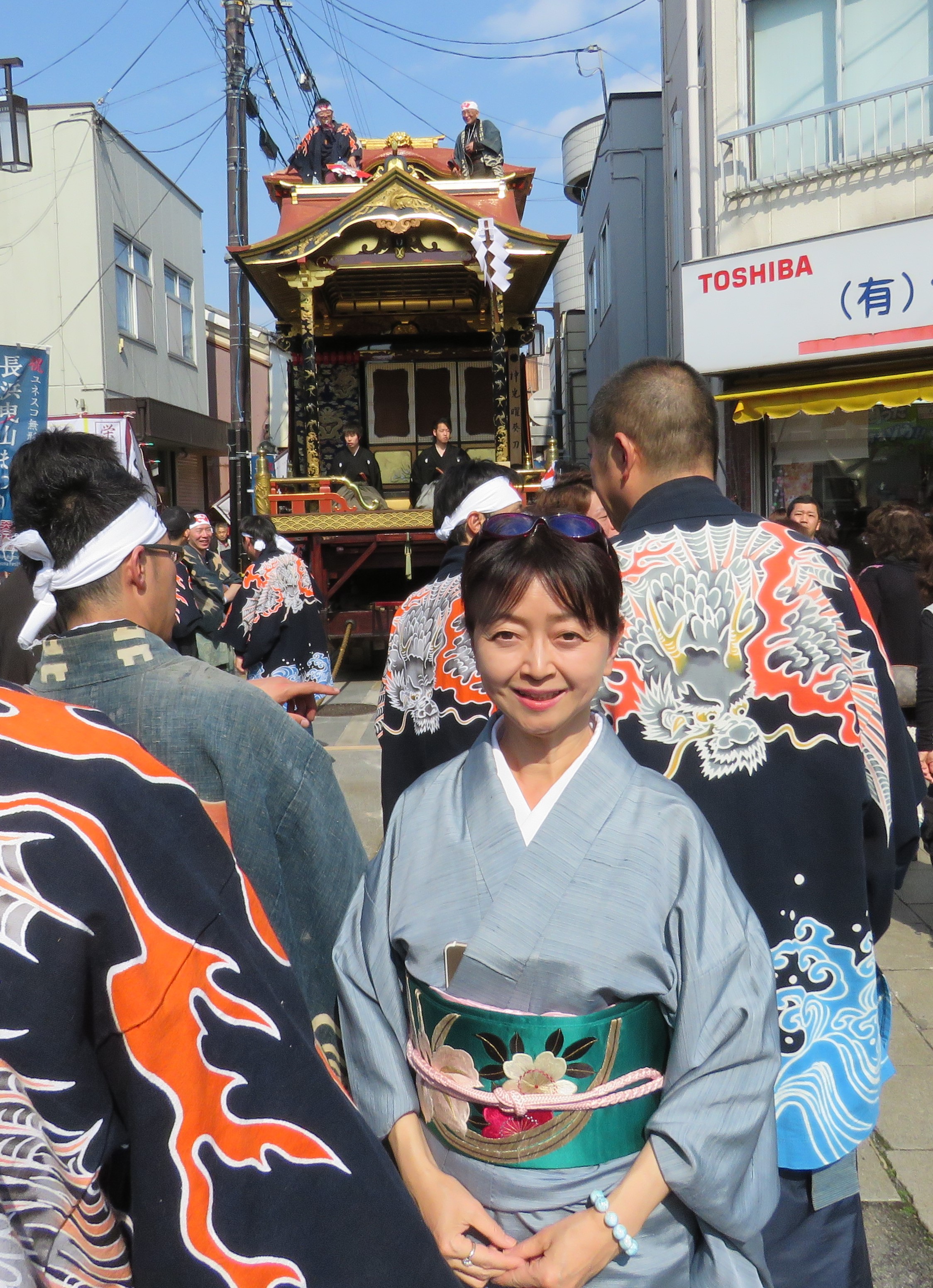 驚いたことに、午後には眩しいほどの晴天に。地元の少年たちが歌舞伎を演じ、山が町々を移動していきます。単なる学芸会と違って、コスプレの極みを味わうわけですから、なんとも羨ましいかぎり。こういう経験をもつ子どもは将来、どんな人生を歩むのでしょうね。