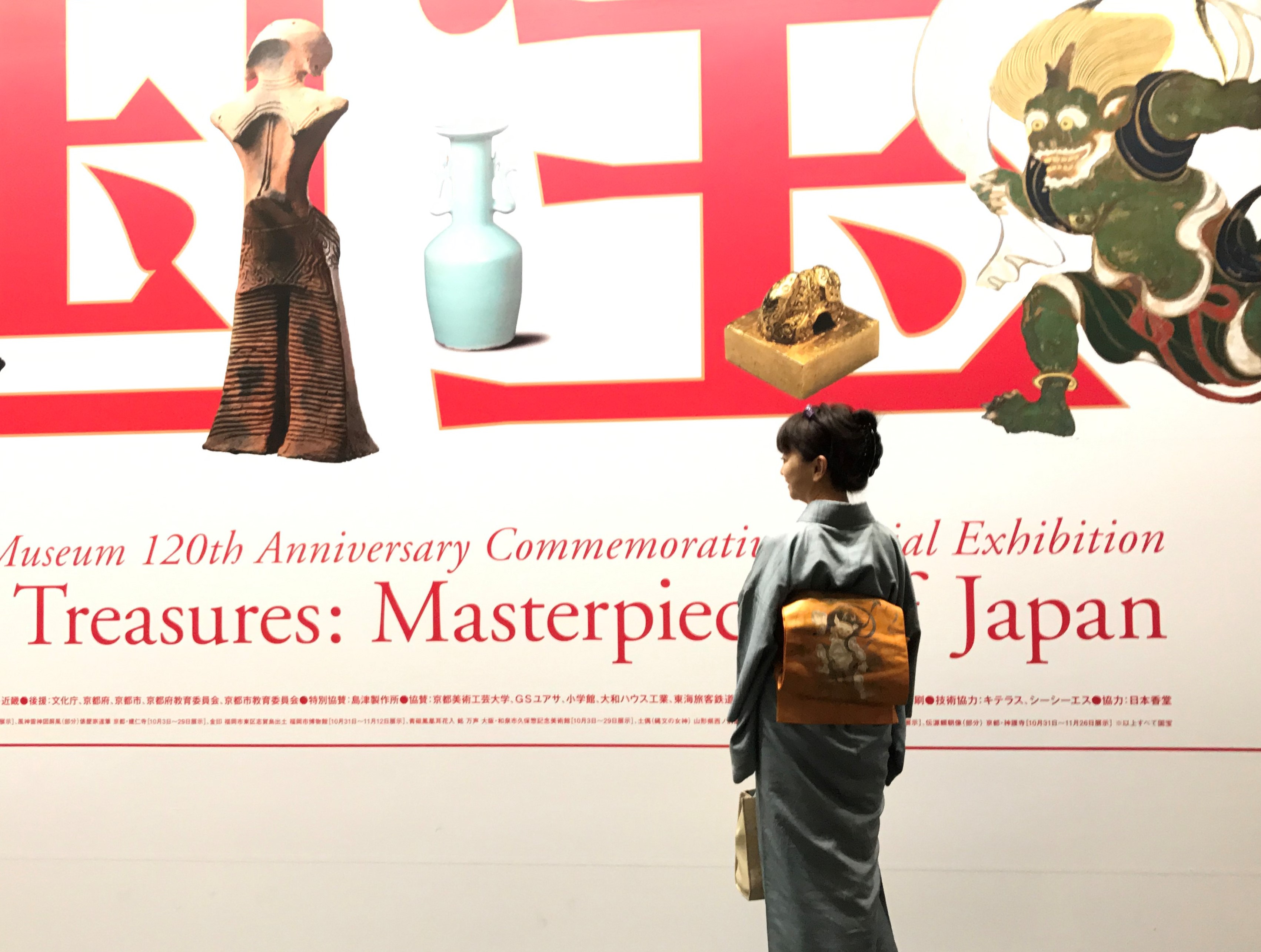 今日終了の二期。金土は20時までだからと昨日18時過ぎに雨の中、出かけたら、館内はそれなりに混雑。雷神の帯ゆえ、風神とともに写真を撮りたいと行きずりの若いカップルにお願いしたところ、国宝の文字が下半分になっております(帯の皺は、この姿で天橋立からの特急に揺られたため)。コスプレ目線からか雷神の帯に二人とも過剰なほどに反応。あのカップルが今後、着物ファンになれば和服普及に一役買ったことになるはず。ふふふ・・・。