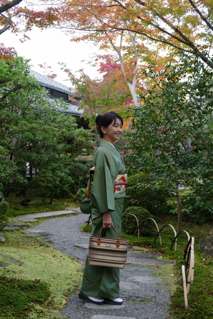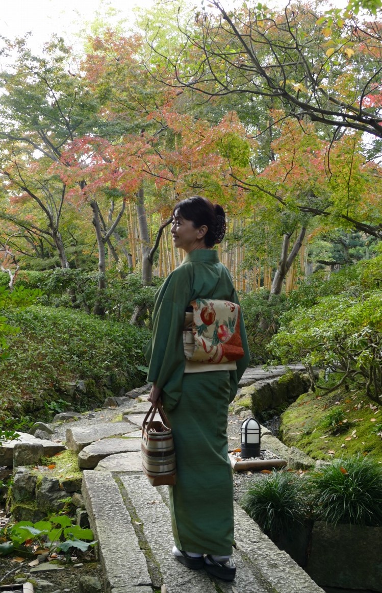 帯は南天文。早いかなあと思いつつ、しかし、あちこちで紅葉に隠れて色づいている南天の実をはっけんするにつけ、自ら纏いたくなったのでした。