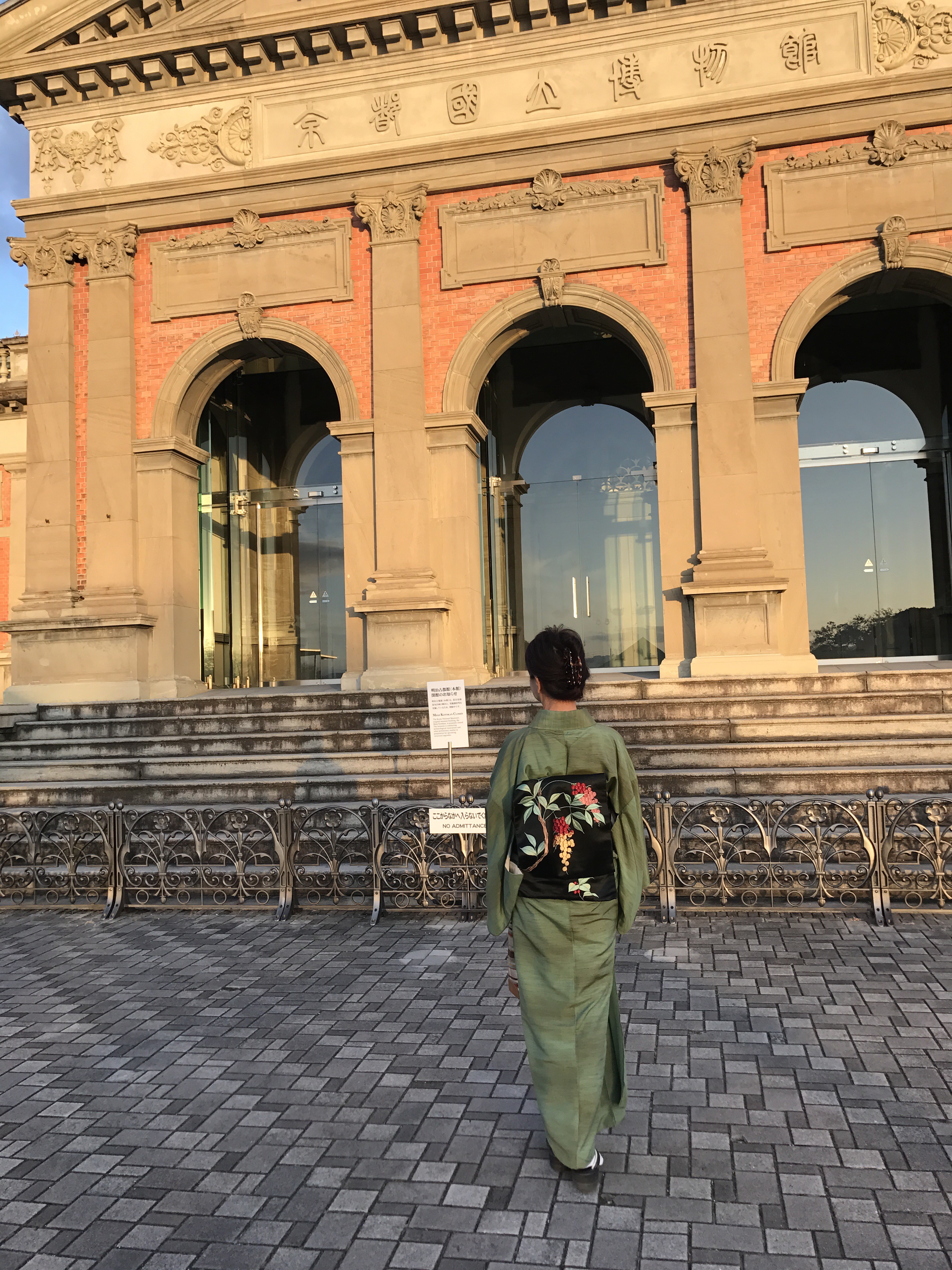 平安神宮の一の鳥居が私の背後に見えるロケーション。ロームシアターのすぐ近くです。