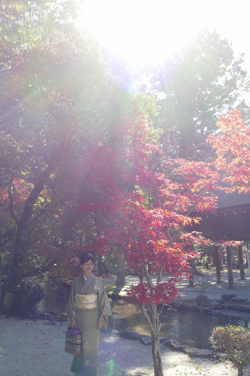 今年も相嘗祭(あいなめさい)に参列しました。この日は陽射しが強く、照葉も水面も例年にも増して眩しく、神事の後はより一層、境内の気が澄み渡って、右のような写真になりました。