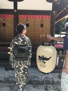 八咫烏の帯にあわせているのは、母の形見で、実は羽尺だった。帯9月に向日葵の羽織は暑くて無理なので、帯ががくるあたりに黒い布を入れて、着物に仕立てたもの。アバンギャルドな向日葵文は、菊のお仲間と解釈して、この日に着ている。しかしながら、着物でも単衣はまだ暑い。
