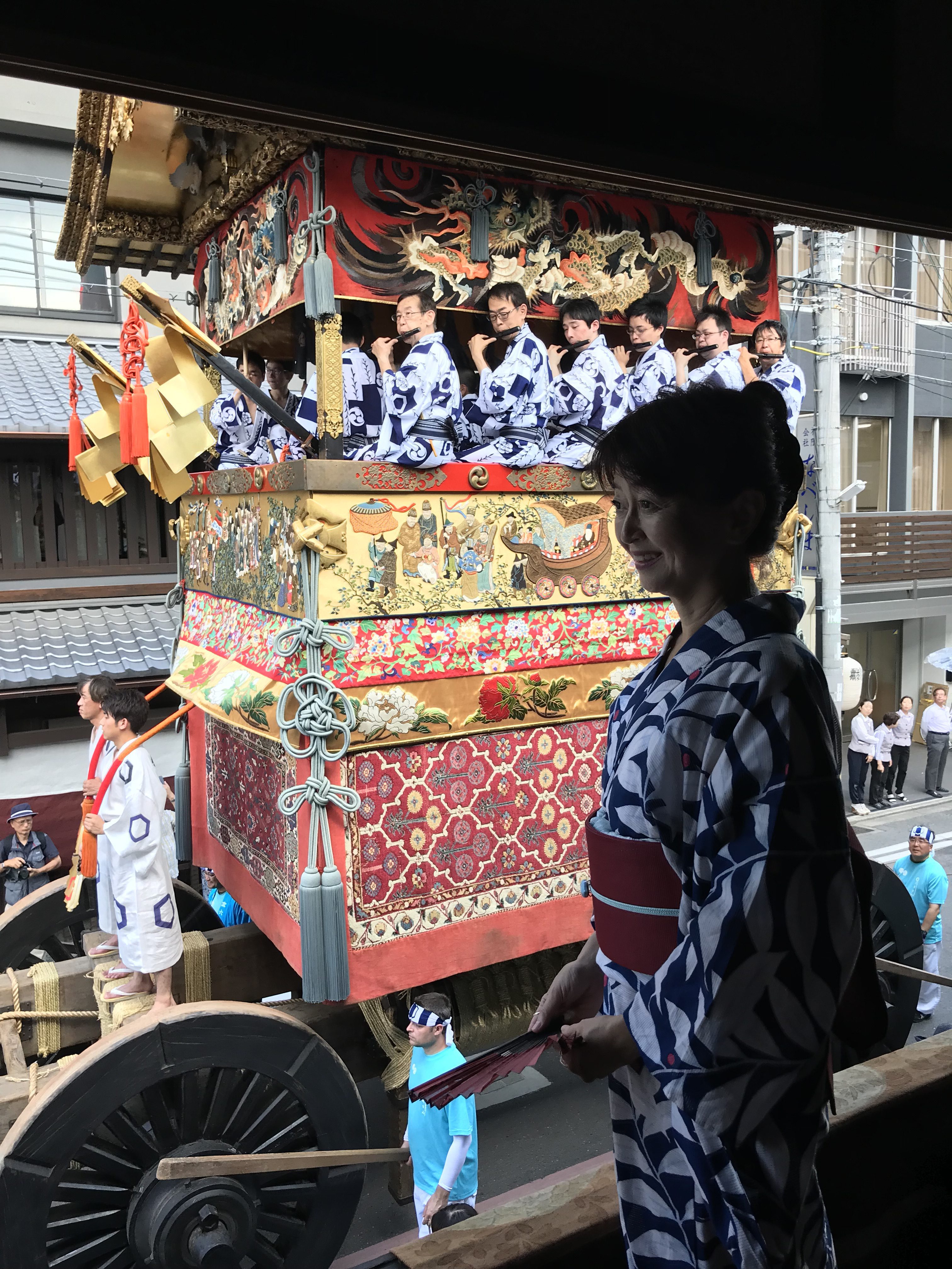 巡行の日、私は脚立持ってカメラ持って走っております。浴衣着ていれば、他の方のカメラにフレームインしても、映像を台無しにしないので。私なりの気遣い。